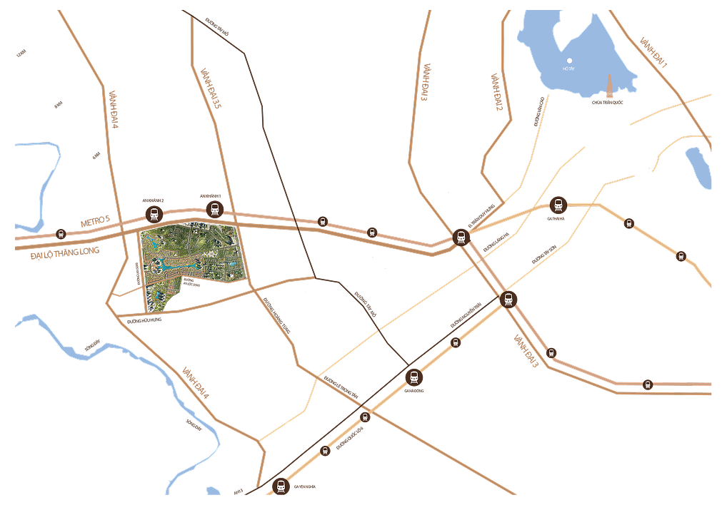 Từ lợi thế siêu kết nối với Vành đai 3.5 – Vành đai 4 – Đại lộ Thăng Long – Metro 5, dự án vươn mình thành điểm đến tinh hoa, hội tụ nhịp sống hiện đại và giá trị bền vững.